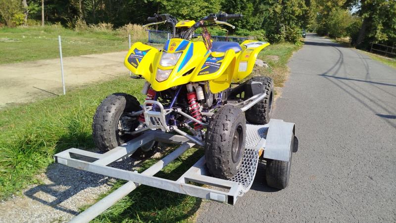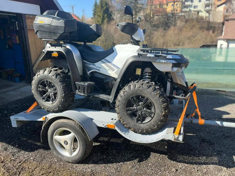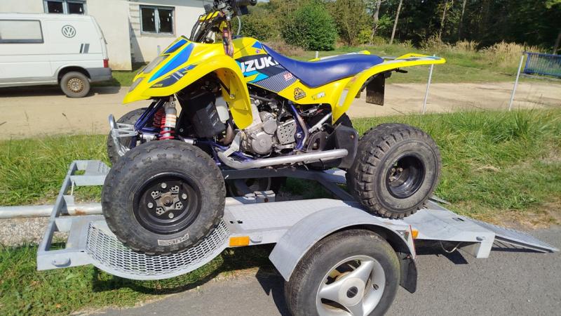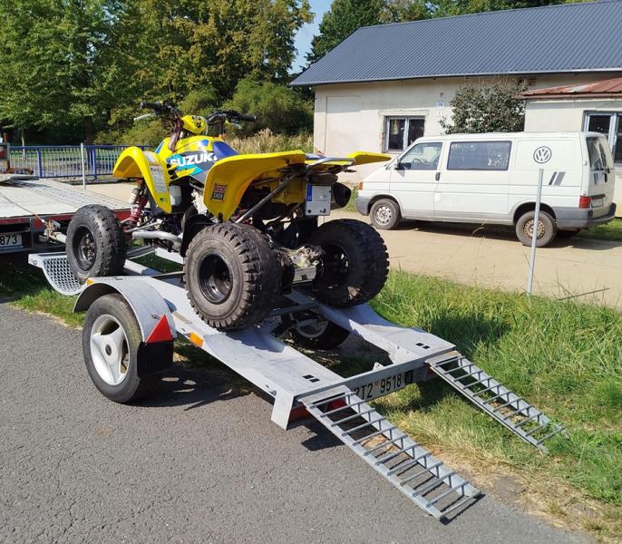 Speciálně vyrobený přívěs na převoz malých i velkých čtyřkolek. Včetně nájezdů. Náprava nosnost do 750kg a pneu s nosností až 1400kg pro bezpečný převoz. Možnost zapůjčení sady 4 vázacích popruhů o nosnosti 2t za 100kč.